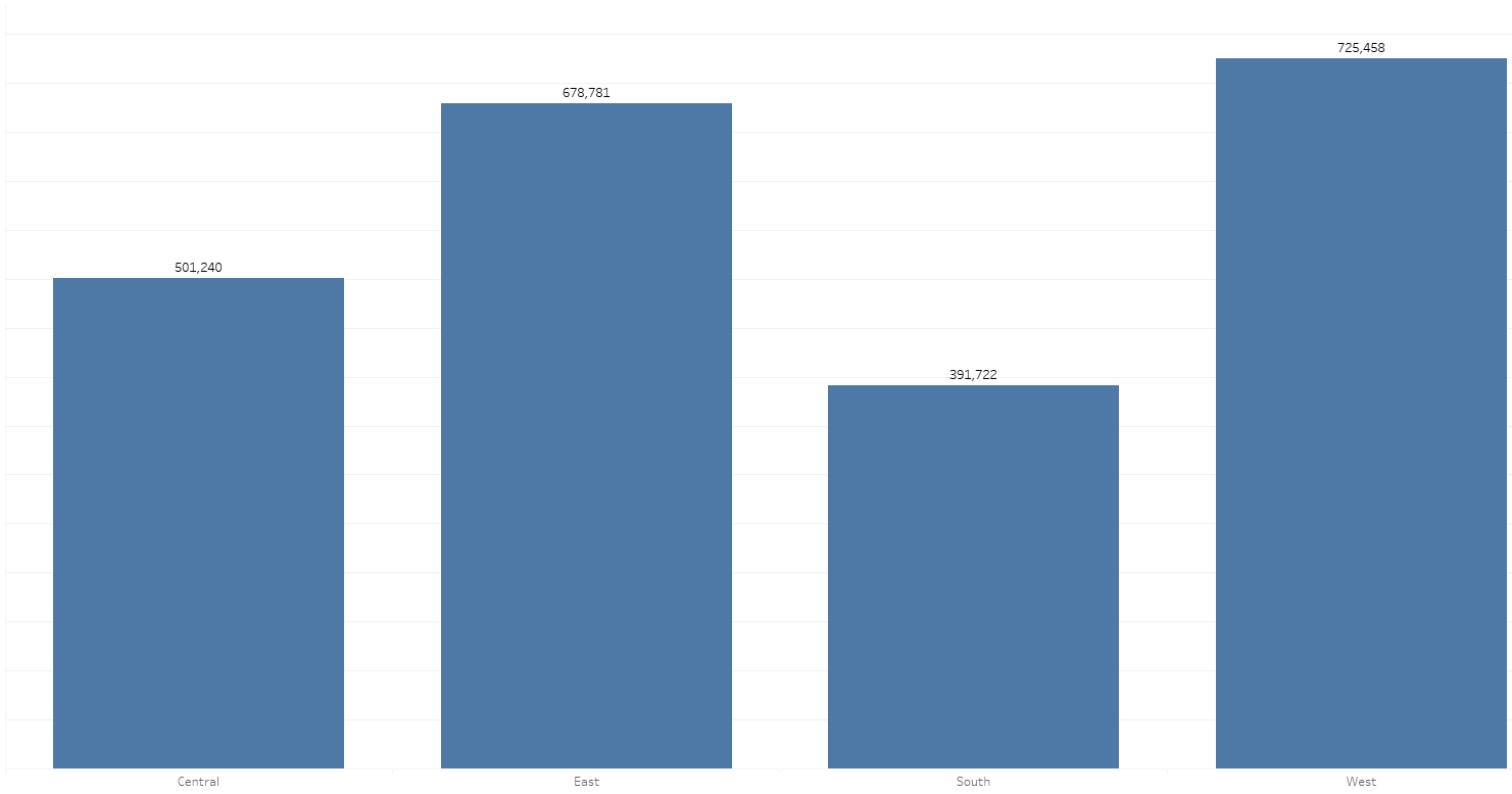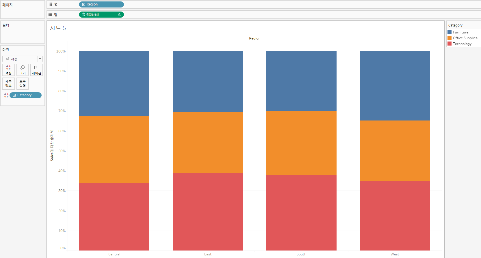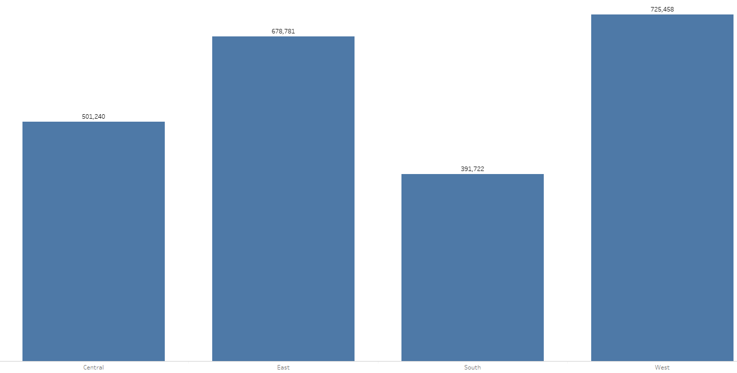 - Region 필드의 Central, East, South, West 데이터만 표현해도 해당 필드가 Region임을 추측할 수 있기 때문에 차트 상단 Region 레이블을 숨깁니다.