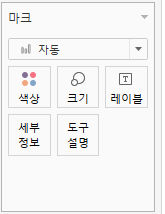 이때, 마크 카드를 확인해보면, 바 차트 기호와 함께 '자동'으로 표기되어 있는데, 이는 Tableau가 Region 필드와 Sales 필드를 시각화할 때, 바 차트가 가장 적절하다고 판단하는 것입니다.
